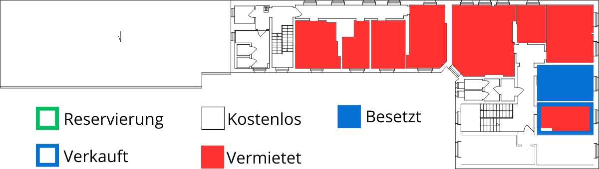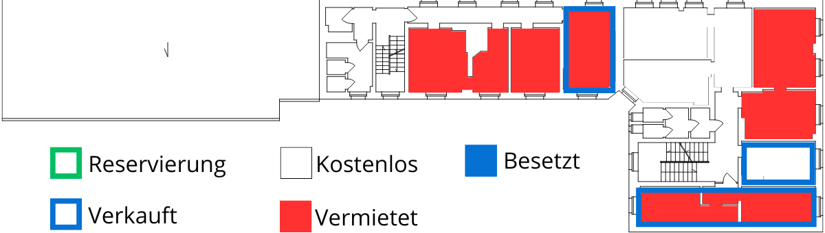 Aufteilung: 6 Büros + Zimmer. Sozial